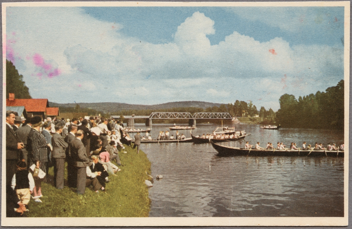Roddtävling med kyrkbåtar på Österdalsälven i Leksand.