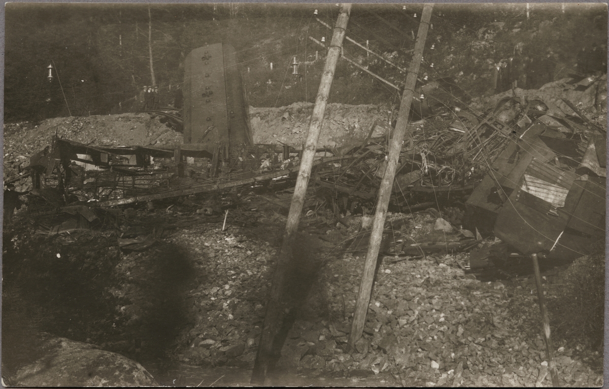 Tågolycka vid Getå den 1 oktober 1918 där bland annat, Statens Järnvägar, SJ F 1200 rasade nedför slänten efter ett banvallsras.