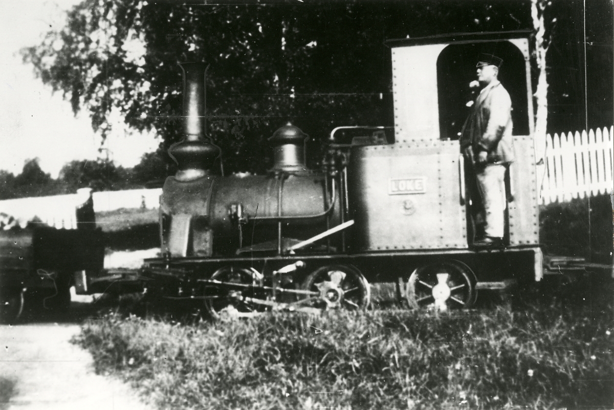 Ångloket "Loke" i Galtström med sin siste förare. Galtström lok 2 "Loke".
