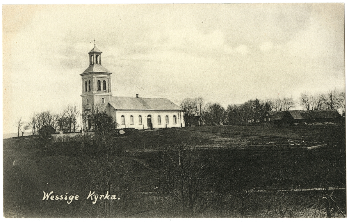 Kyrkan på höjden i socken. Vessige församling tillhör Göteborgs stift. Stenkyrkan uppfördes 1856-59.