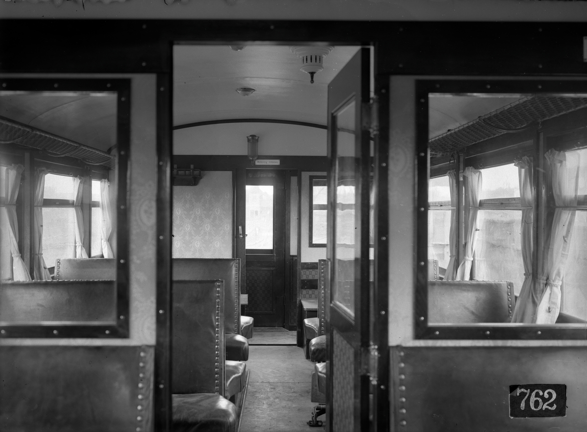 Interiören av Östra centraljbanans (ÖCJ) motorvagn 25, tillverkad av AB Svenska Järnvägsverkstäderna.