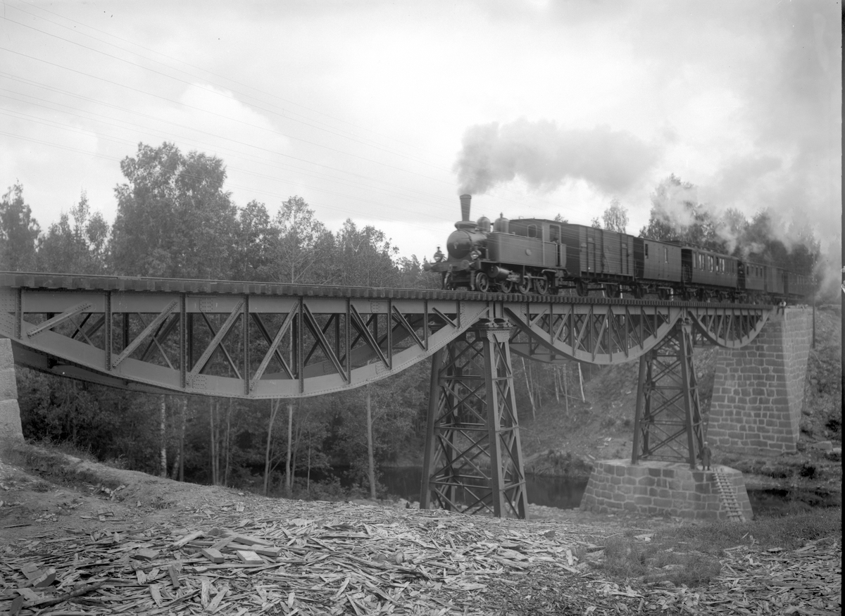 NKJ-Norra Karlskoga Järnväg lok 11 med persontåg på bro
