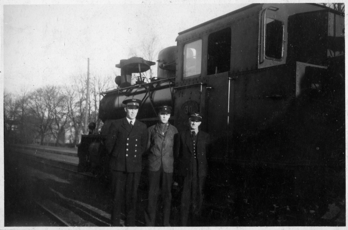 Norsholm - Västervik - Hultsfreds Järnvägar, NVHJ lok 30 med personal på Västervik bangård.