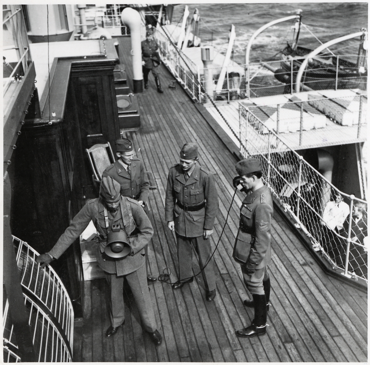 Carl von Horn, byråchef vid järnvägsstyrelsens militärbyrå, talar ombord på Drottning Victoria.