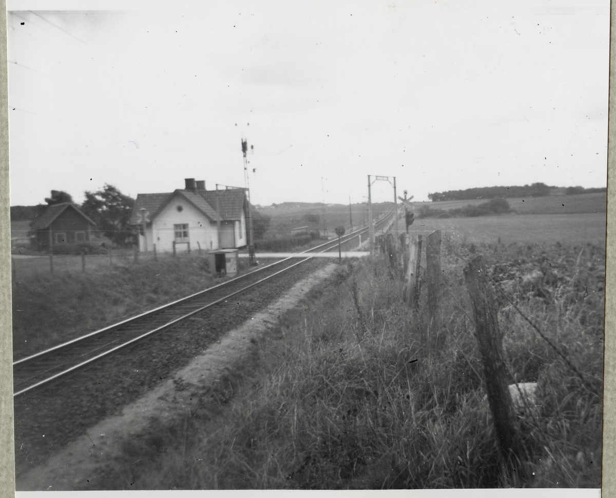 Järnvägsövergång vid Vejby banvaktstuga på linjen mellan Vejbyslätt och Skälderviken.