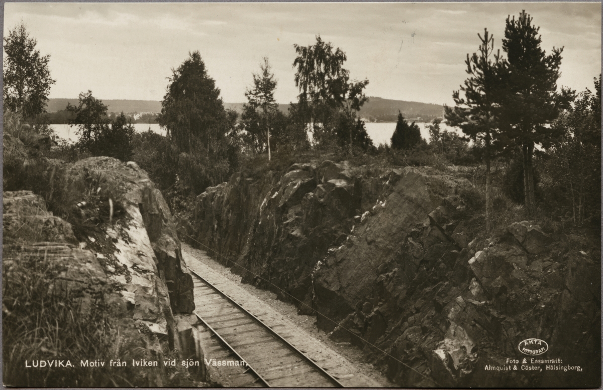 Skärning efter linjen strax norr om Ludvika vid Iviken, sjön Väsman i bakgrunden.