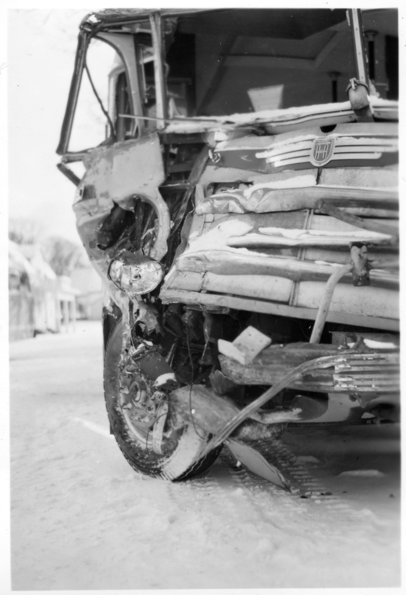 Krockskadad buss Statens Järnvägar, SJ buss 1985.