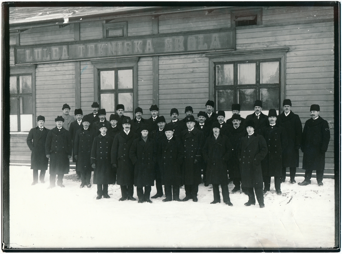 Personal framför Luleå Tekniska Skola.