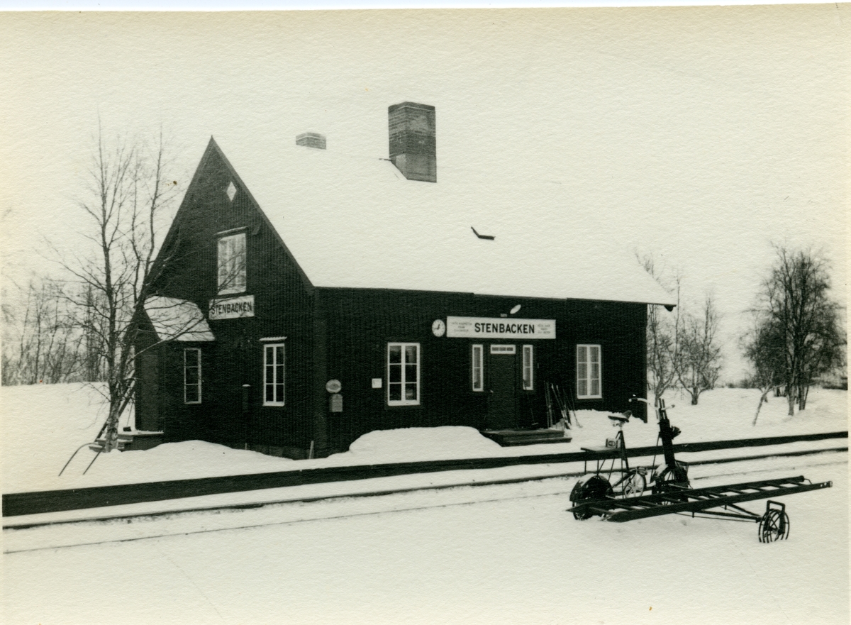 Stenbackens station. Statens Järnvägar, SJ. Banan öppnad 1903. Banan elektrifierades 1915. Stationshuset byggdes 1902 och sålt 1998.