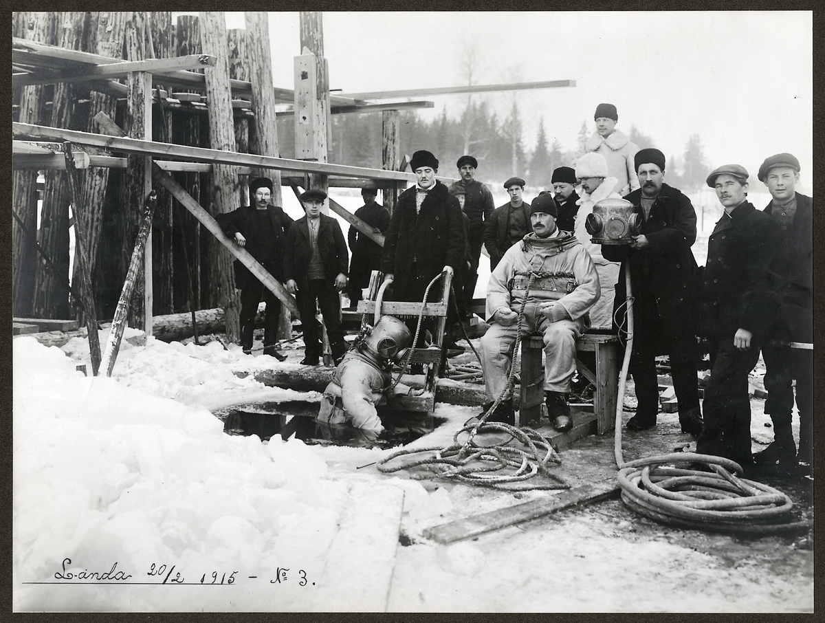 Dykningsarbete pågår i samband med att en ny bro ska byggas över Ljusnan, på linjen mellan Mårdnäs och Landafors längs statsbanan Kilafors-Söderhamn-Stugsund.
