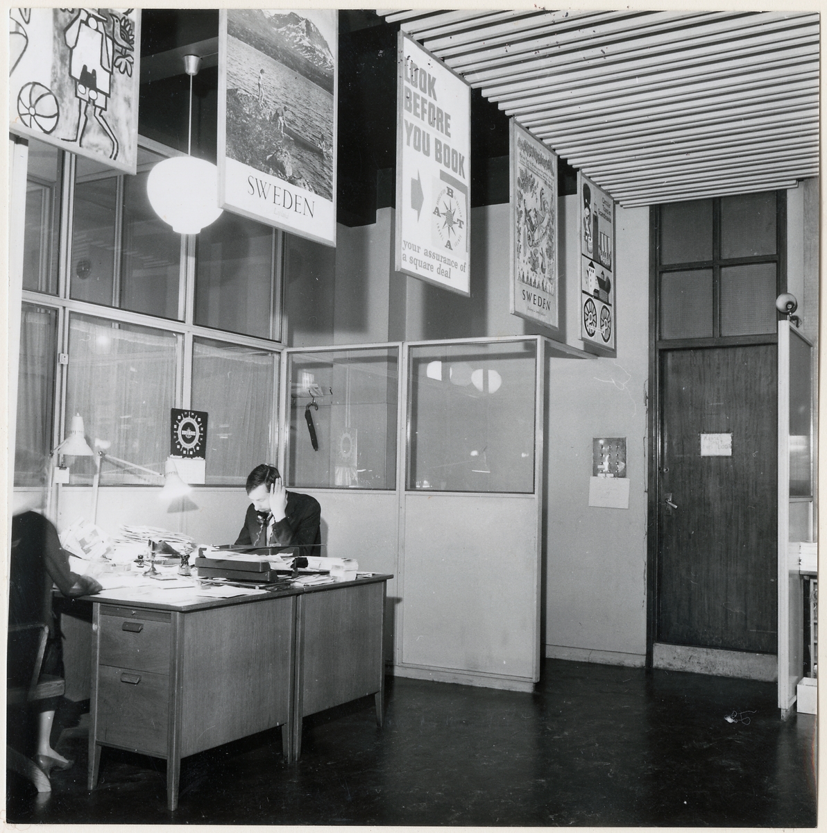 Statens Järnvägar, SJ Resebyrå i London under namnet 'Swedish Travel Bureau'. Vid den här tidpunkten låg resebyrån 7-8 Conduit Street i London.