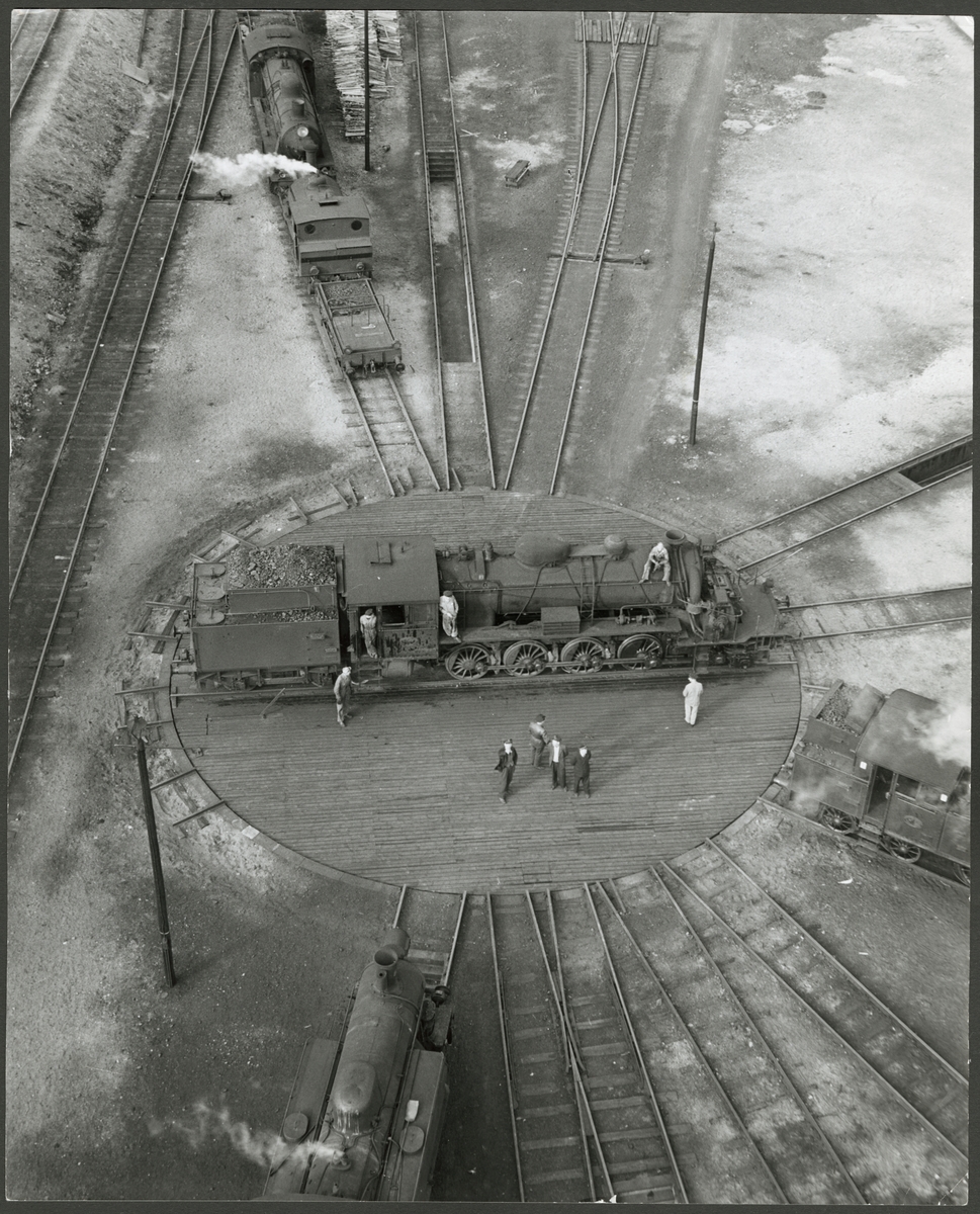 Trafikaktiebolaget Grängesberg - Oxelösunds Järnvägar, TGOJ M3t 73 på vändskivan och TGOJ S3 91 till höger, Eskilstuna C.