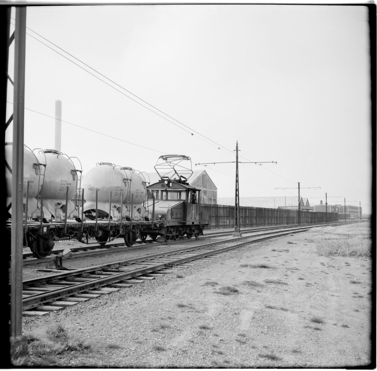 Helsingborgs Stads Spårvägar, HSS lok 1 med godståg från Kopparverket på väg mot Statens Järnvägar, SJ.