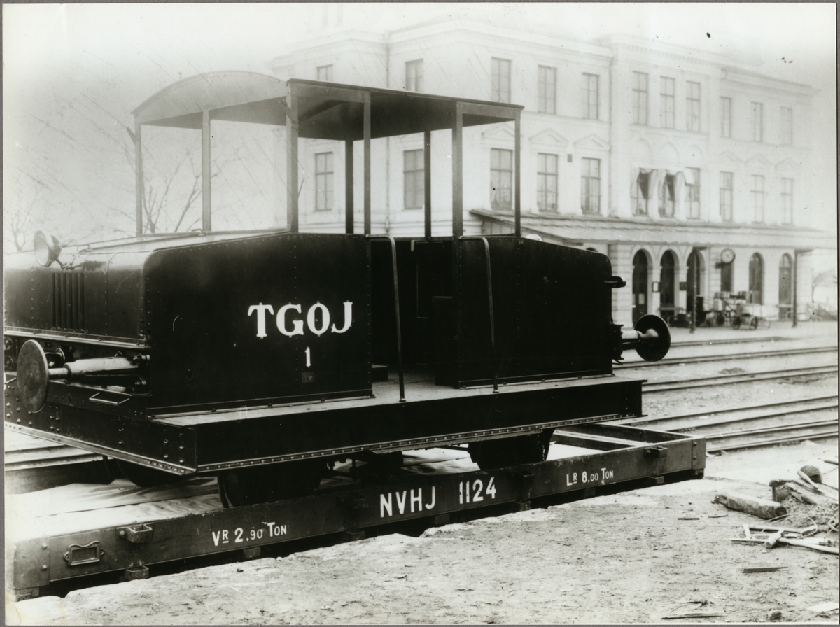 Trafikaktiebolaget Grängesberg – Oxelösunds Järnvägar, TGOJ Z 1 transporteras på Norsholm - Västervik - Hultsfreds Järnvägar, NVHJ L 1124.