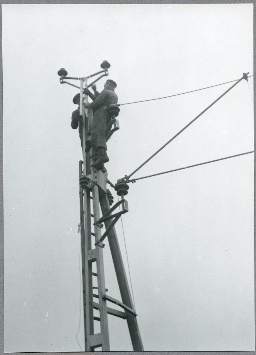 Monteringsarbete någonstans på linjen Gävle - Söderhamn - Kilafors.
