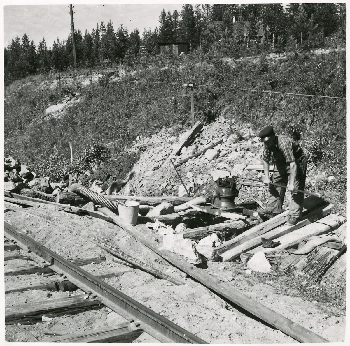 Stolphål som pumpas på överflödigt grundvatten innan resning.