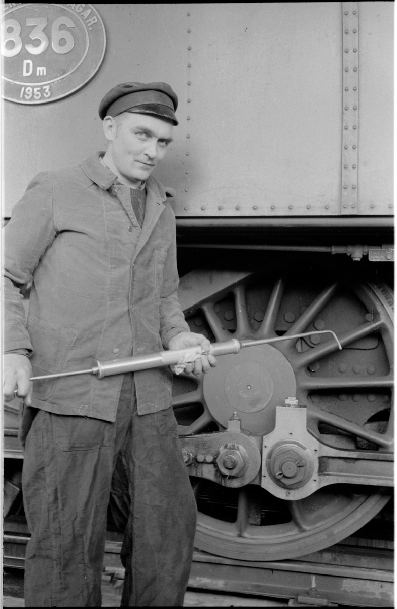 Statens Järnvägar, SJ Dm 836. Verkstadsarbetare med smörjspruta.