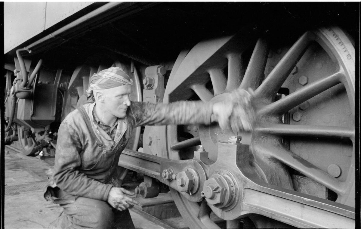 Verkstadsarbetare putsar hjulnavet.