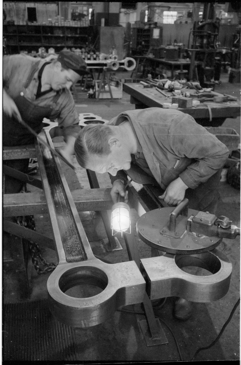 Verkstadsarbetare undersöker kvaliteten på kopplingstänger.