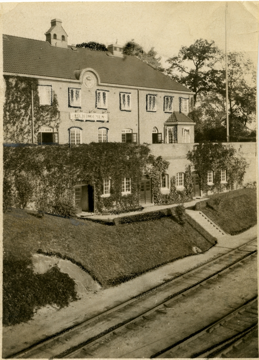 Titel: Nytt tvåvånings stationshus i tegel 1910 .Stationen togs i bruk 1860. Det ursprungliga, i en våning uppförda stationshuset i trä, ersattes 1910 med ett nytt stationshus, uppfört i tegel i två våningar. När Årstabron tagits i bruk 26 nov 1929, upphörde persontrafiken. 1910 tillkom två nya ställverk med bro, plattform och hiss. 1900 utvidgades spårsystemet kraftigt, 1931 ytterligare spår. Från järnvägens öppnande till 1930 låg här huvudverkstaden, 1930-31 flyttad till Tomteboda . Sträckan Liljeholmen - Nyboda till kom sedan stambanans nya sträckning över Årstabron tagits i bruk 1929.11.06