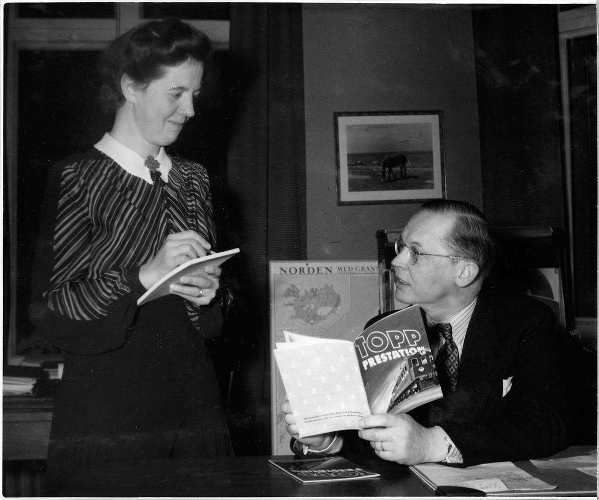 Statens Järnvägar, SJ personal på arbetsplats, fröken R. Söderman hos Reka:s sekreterare Nils Mård.