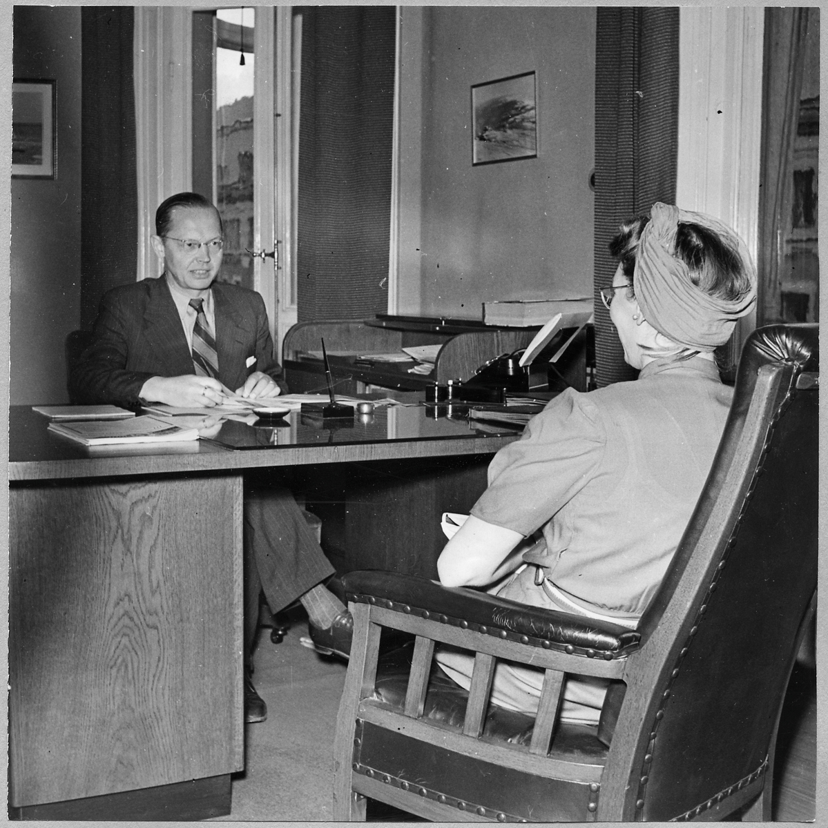 Statens Järnvägar, SJ personal, fru Eva Ek hos Reka:s sekreterare Nils Mård.