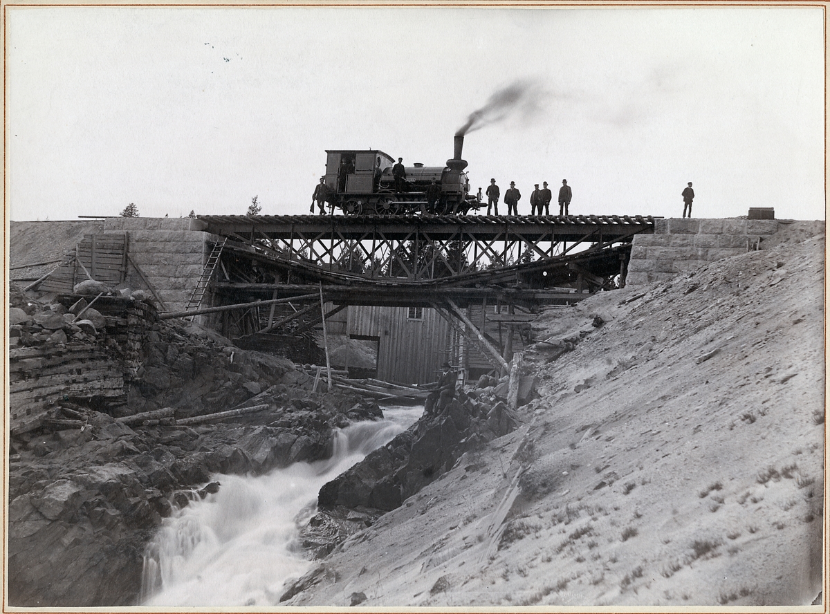 Bro över Utterån på linjen mellan Mellansel och Trehörningsjö. Statens Järnvägsbyggader, SJB 3 Ä 507 'Bore', sadeltanklok.