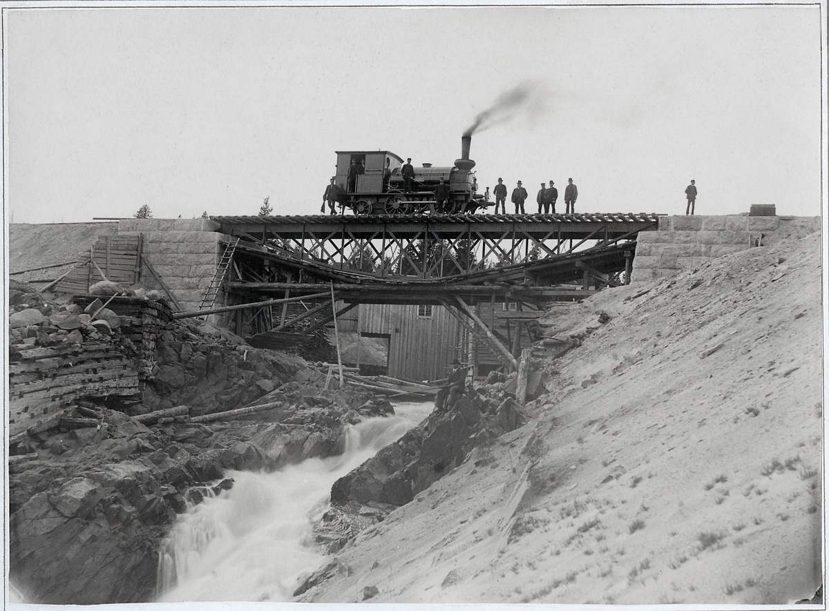 Bro över Utterån på linjen mellan Mellansel och Trehörningsjö. Statens Järnvägsbyggader, SJB 3 Ä 507 'Bore', sadeltanklok.