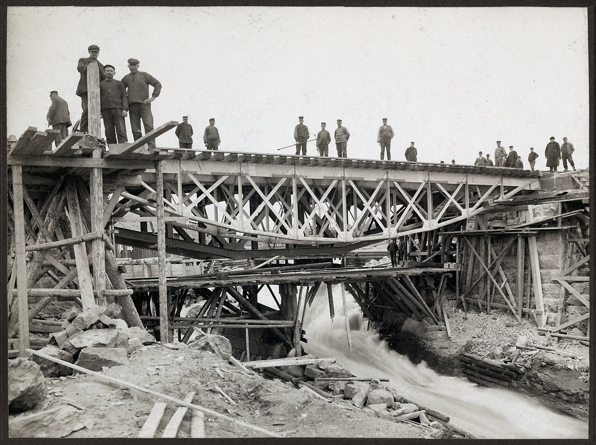 Byggandet av Utteråbron på linjen mellan Mellansel och Trehörningsjö.