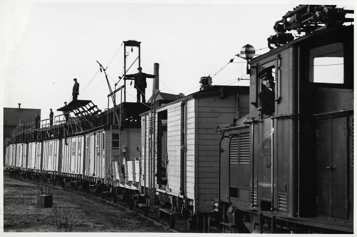 Efd. Elektrifieringsarbete. Statens Järnvägar, SJ 272 ackumulatorlok med elrevisionsvagnar.