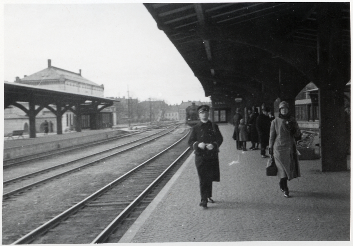 Titel: Järnvägsstation med bangården.