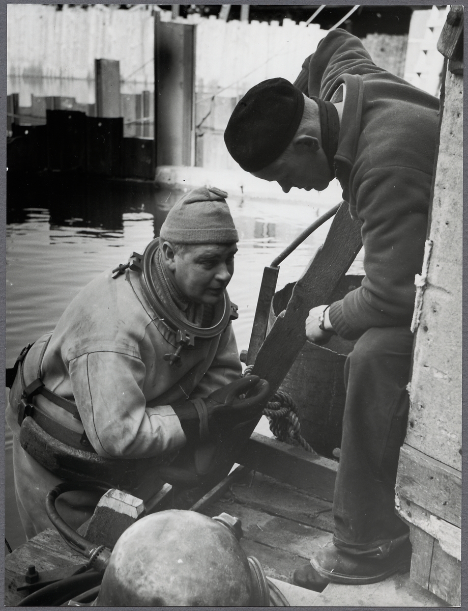 Bro och spårarbeten Stockholm Central - Stockholm Södra. Dykare utför arbete.