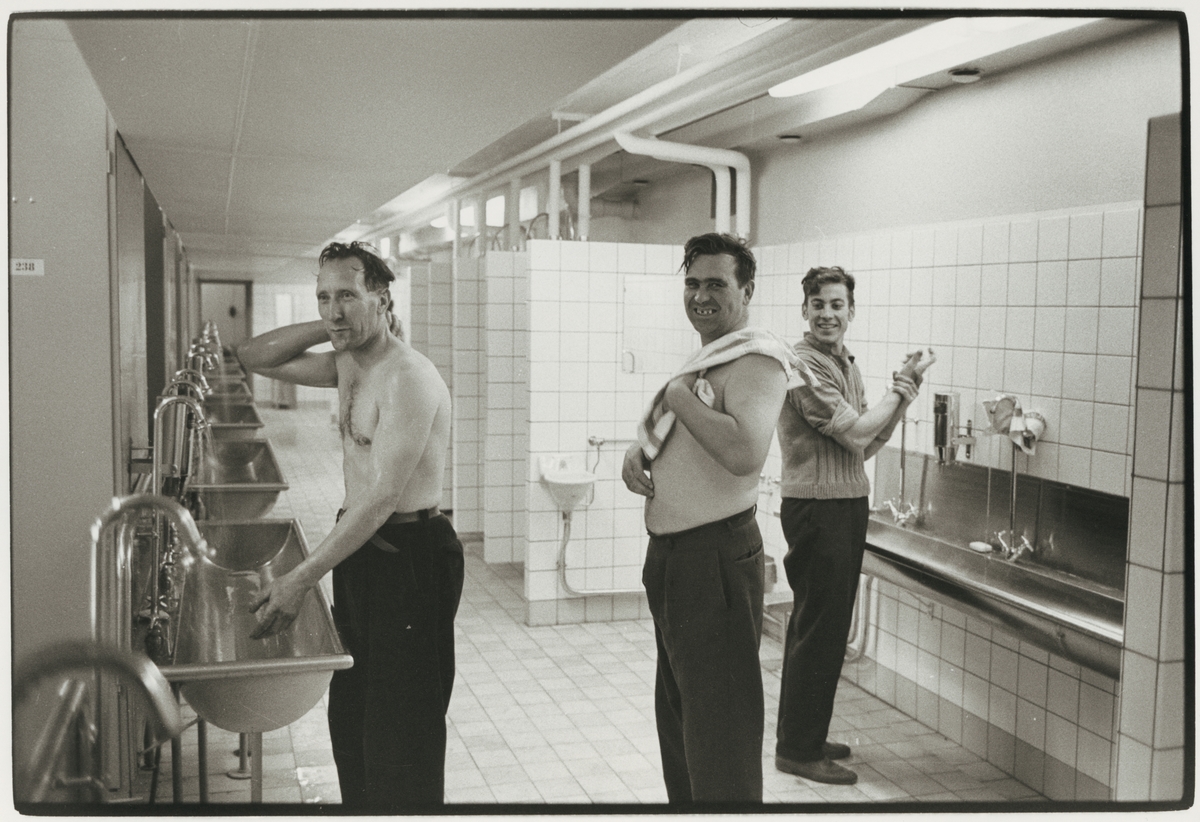 Stråssa gruva, tre män i duschrummet som tvättar sig.