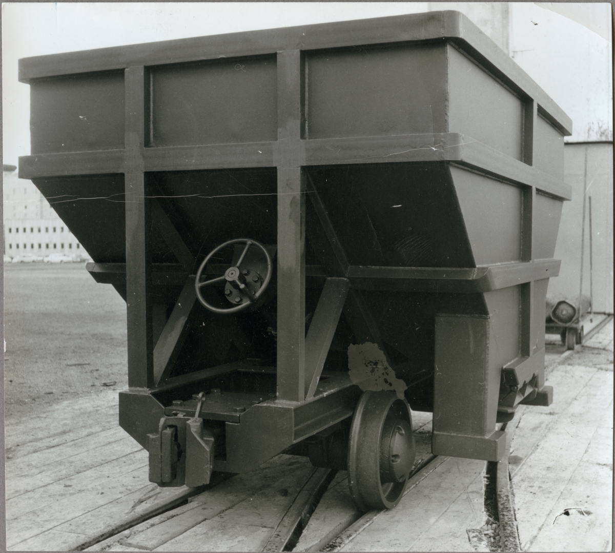 En gruvvagn för Stråssa gruva utanför verkstaden i Eskilstuna.