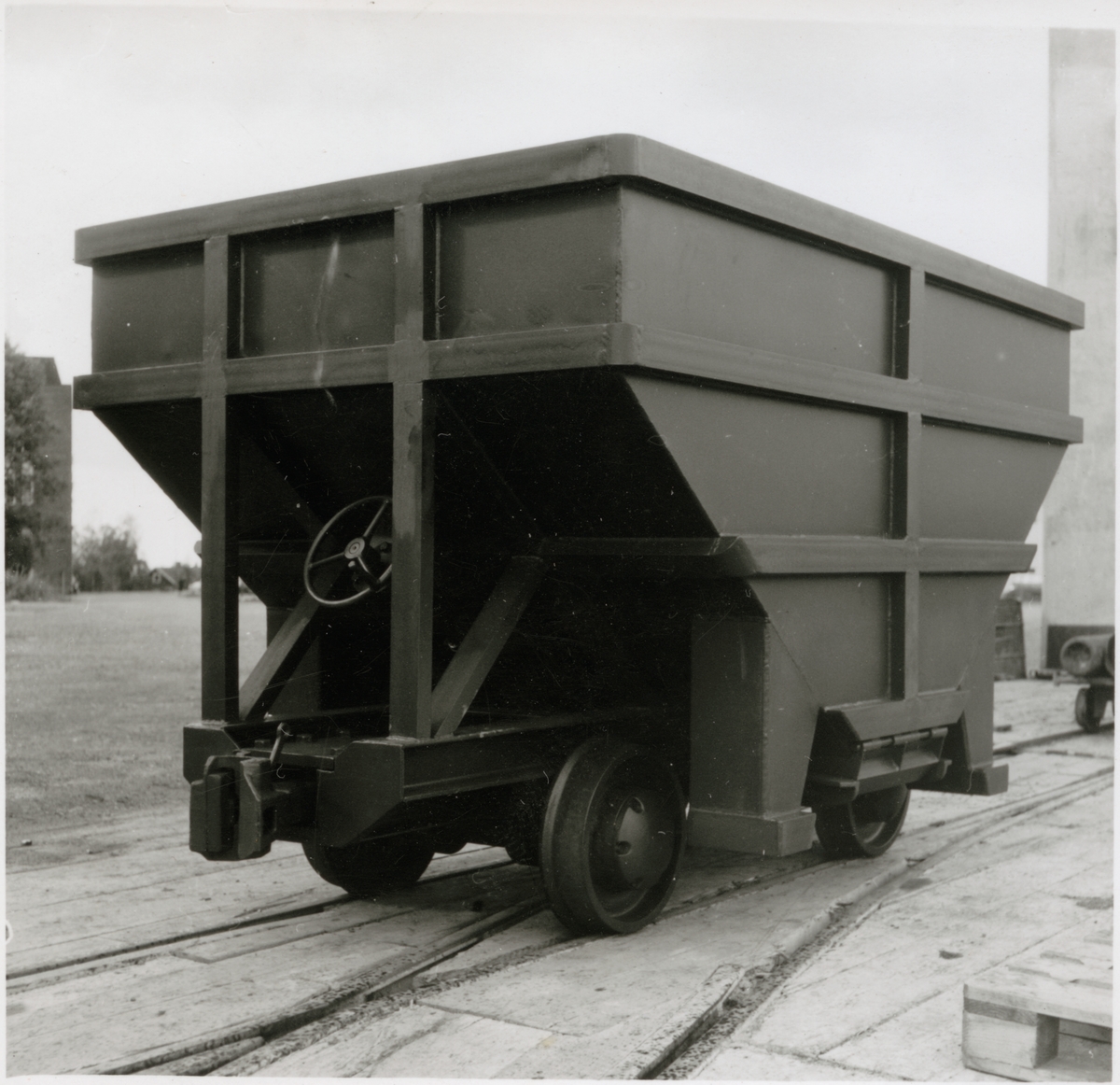 En gruvvagn för Stråssa gruva utanför verkstaden i Eskilstuna.