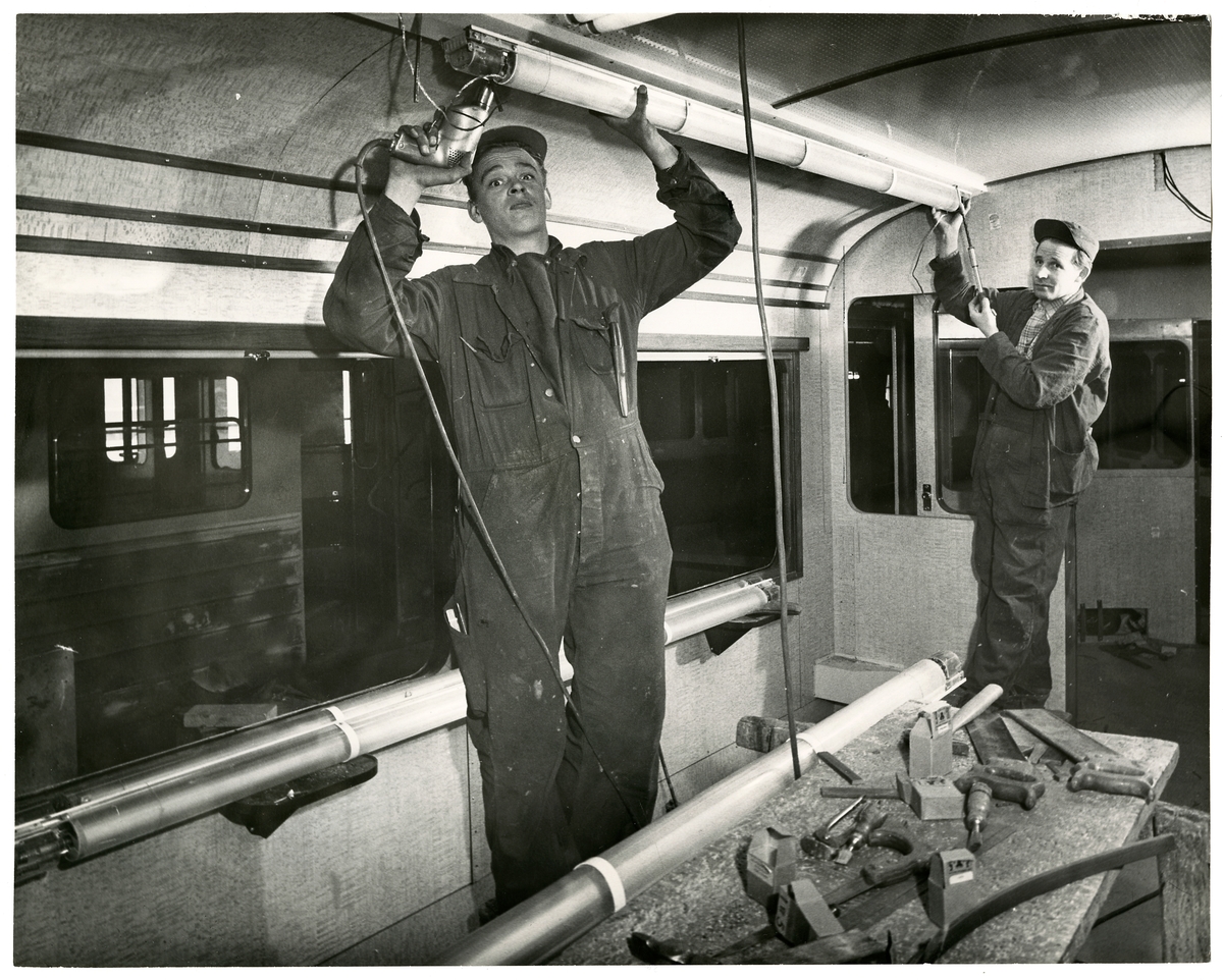 Rälsbusstillverkning hos Hilding Carlsson Mekaniska Verkstad i Umeå.
