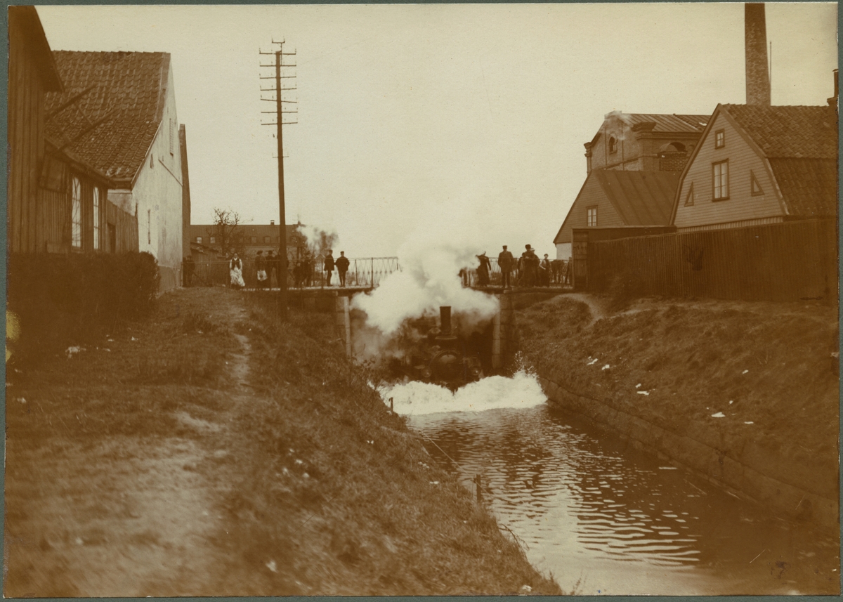 Sölvesborg-Kristianstads Järnväg, SCJ. Översvämning av banvallen under en viadukt i Sölvesborg.