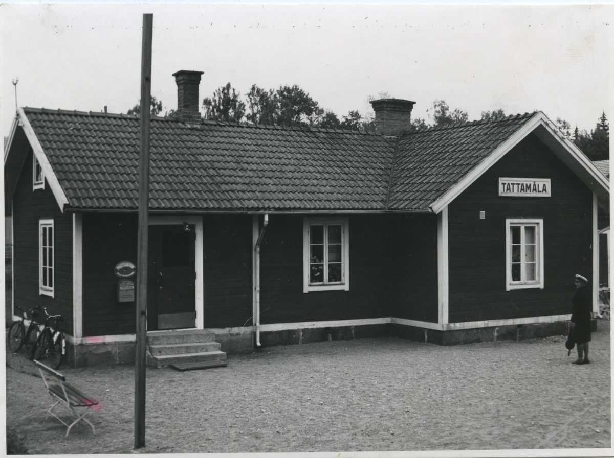 Tattamåla hållplats. Bredåkra - Tingsryds Järnväg, BTJ. Kvinnlig personal.