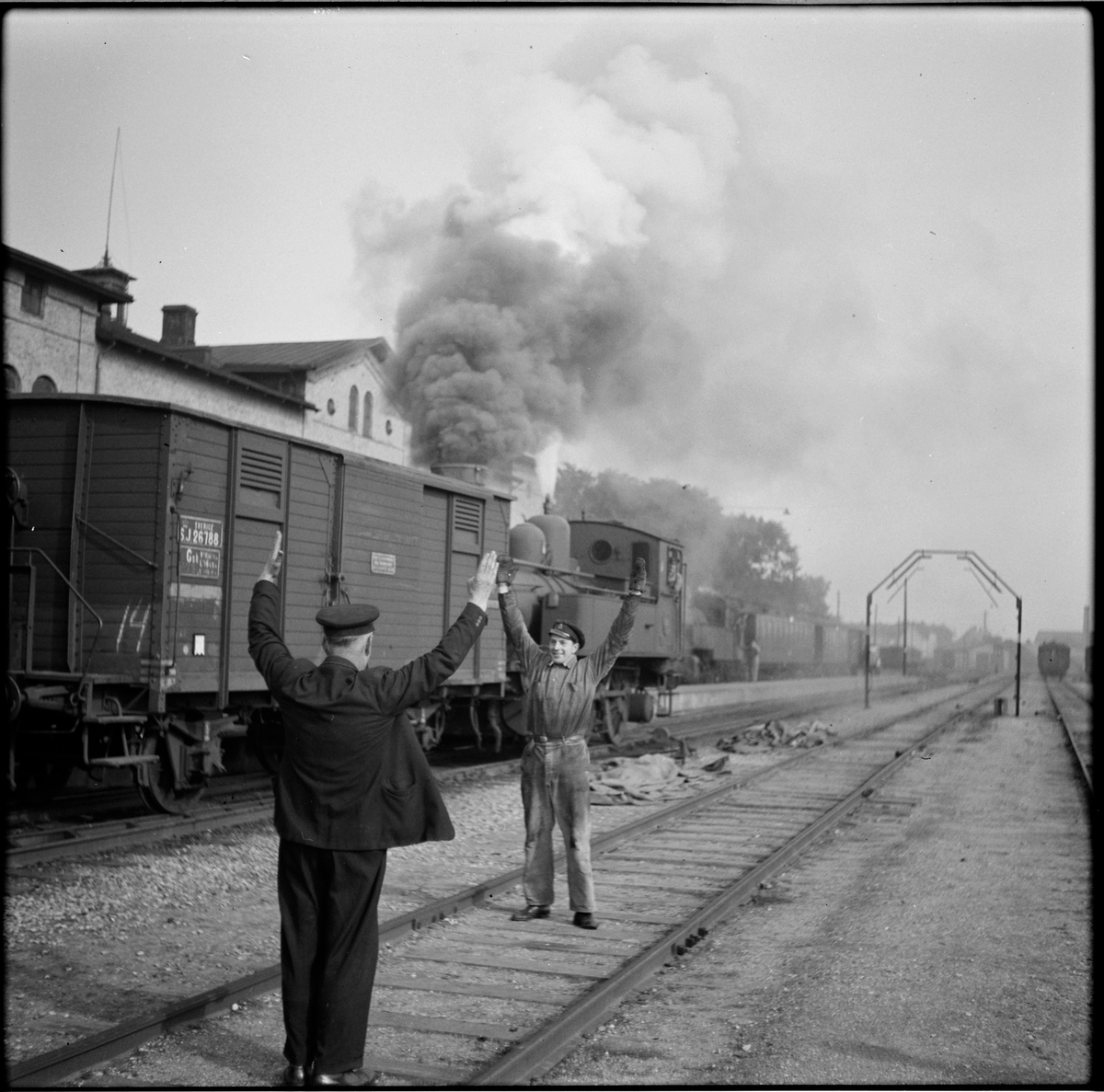 Personal på bangård. Statens Järnvägar, SJ G 26788.