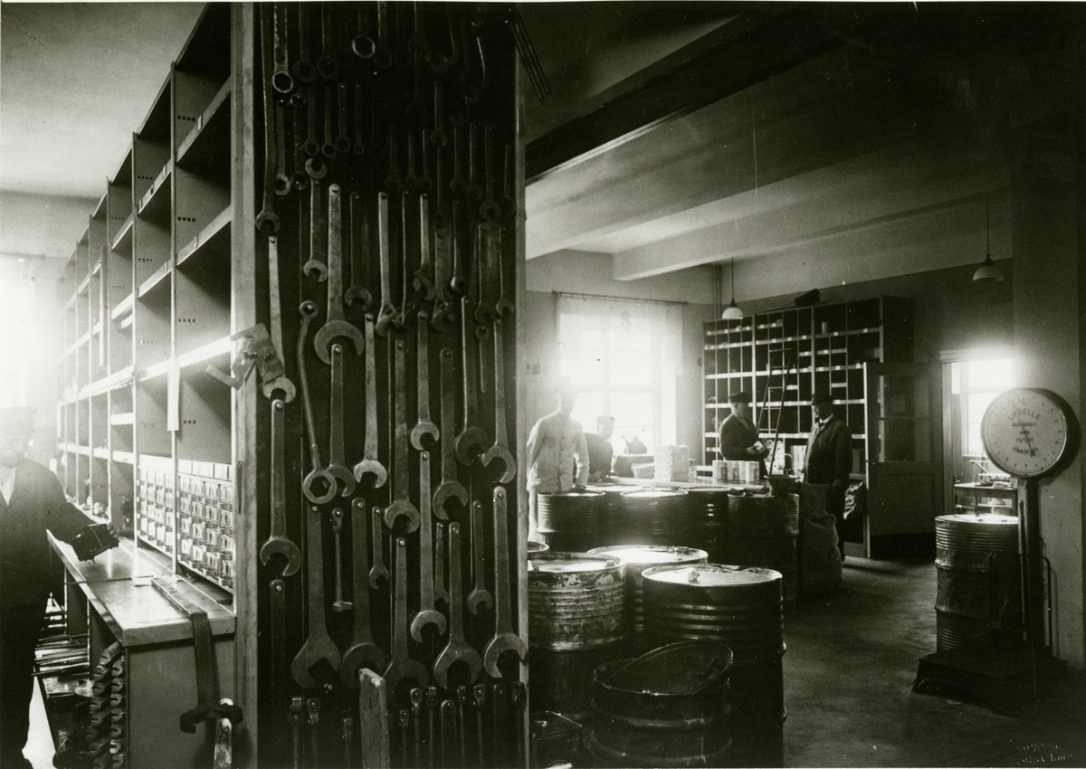 Interiör från huvudverkstaden, genom elektrifieringen väsentligt minskade förrådet vid Driftverkstaden.