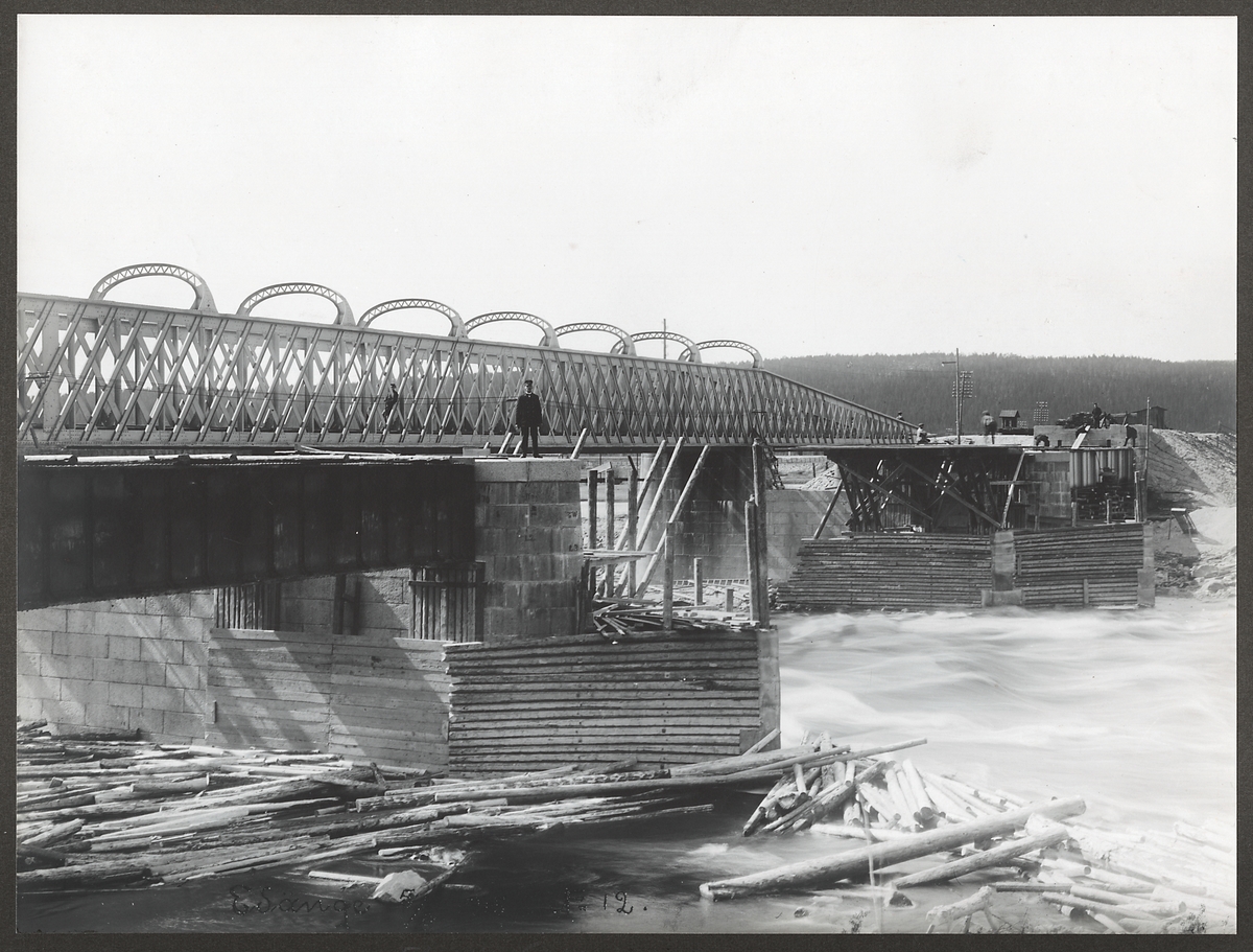 Uppförande av järnvägsbro över Ljusnan älv vid Edänge.