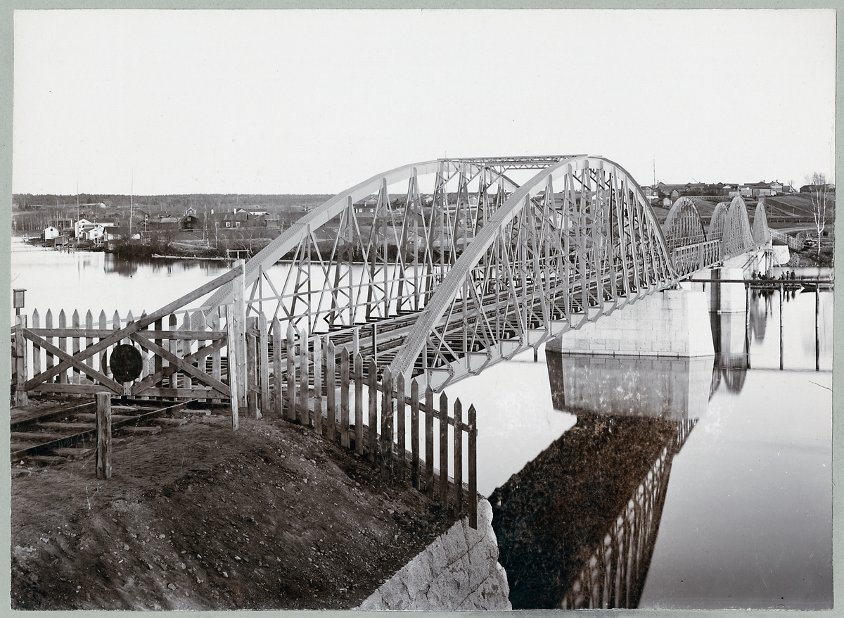 Linjen mellan Mora och Mora Noret. Kombinerad järnväg- och landsvägsbro över Österdalälven vid Mora. Ett brospann var svängbart för att fartyg skulle kunna passera. Bron invigdes 1896-09-19 och anläggningskostnaden för själva bron uppgick till 171 505 kr.
