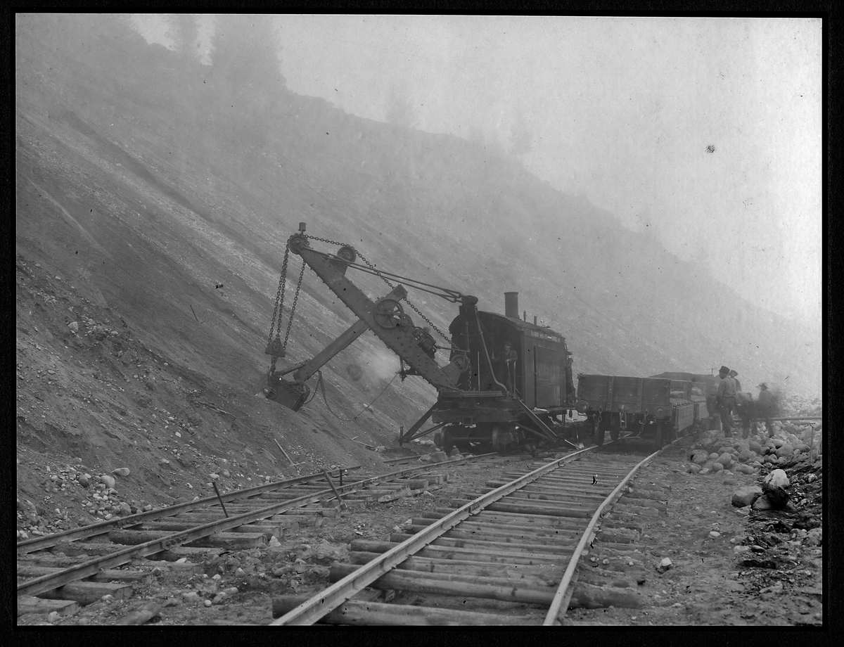 Titel: Grusgropen med ånggrävmaskinen. Statsbanan Järna - Norrköping.