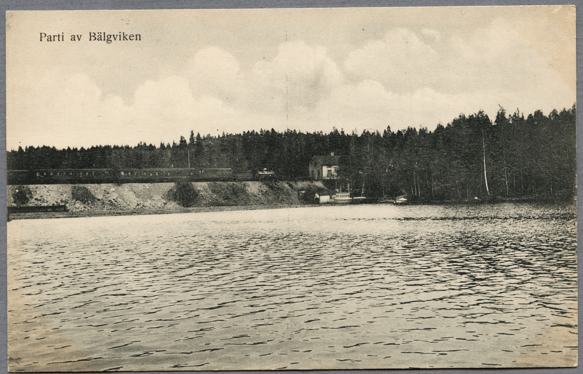 Titel: Vy över Bälgviken med järnvägsstationen i bakgrunden.