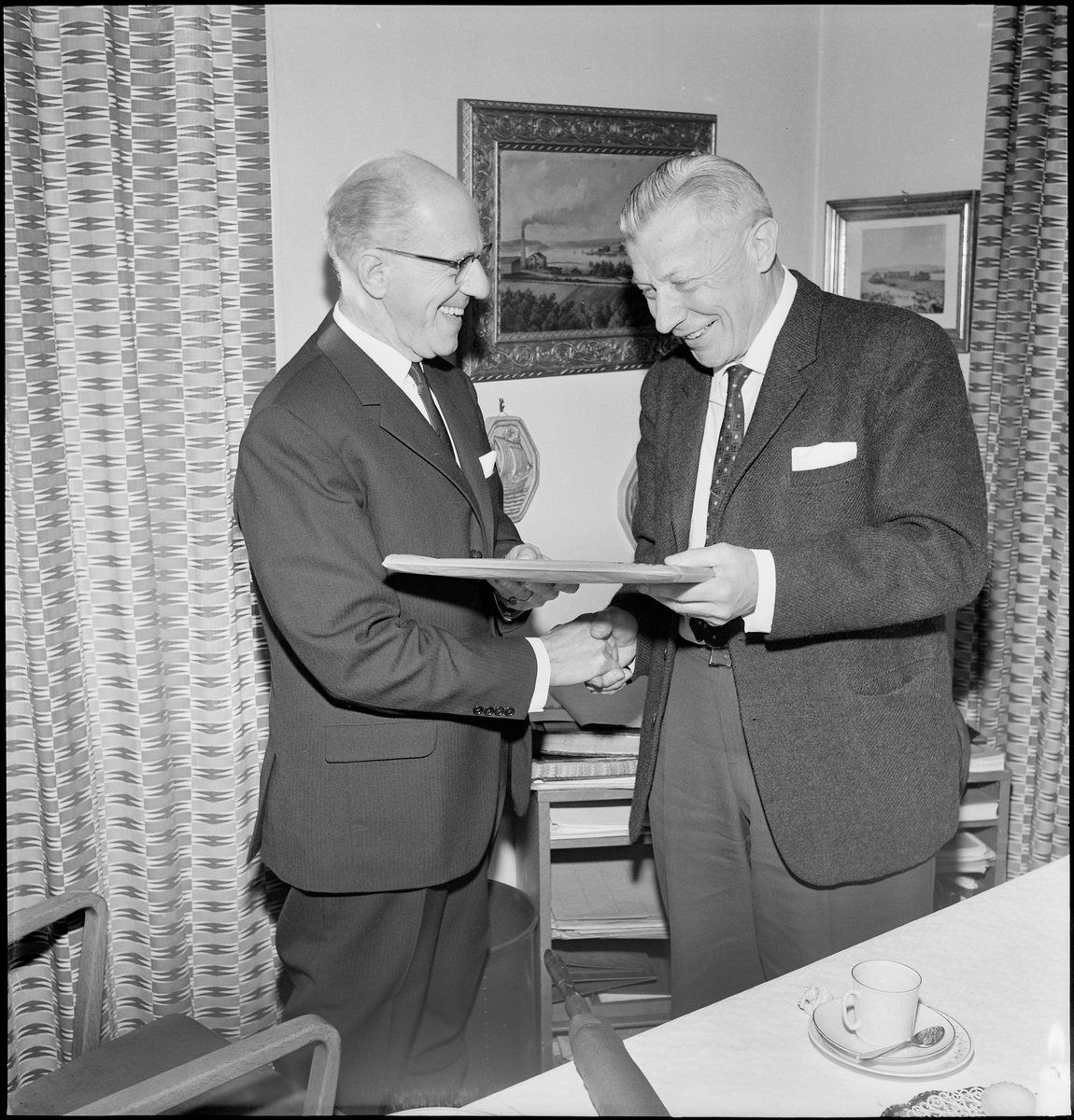 Titel: Bernhard Hjelm vid järnvägsmuseet avtackas.