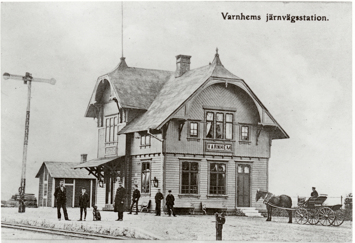 Skövde - Axvalls Järnväg, SAJ. Personal framför stationshuset.