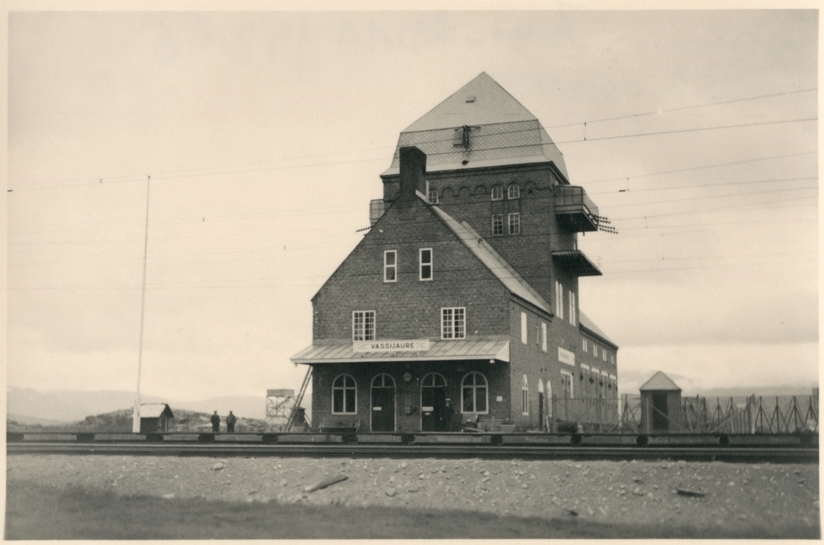 Statens Järnvägar, SJ, personal på plattformen. Stationen byggd 1902 elektrifiering 1915.