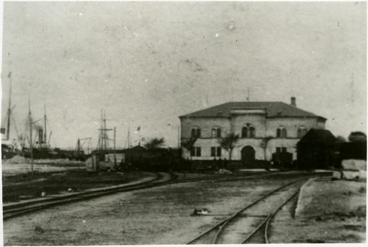 Västra delen av bangården i Trälleborg före nya stationshusets uppförande.