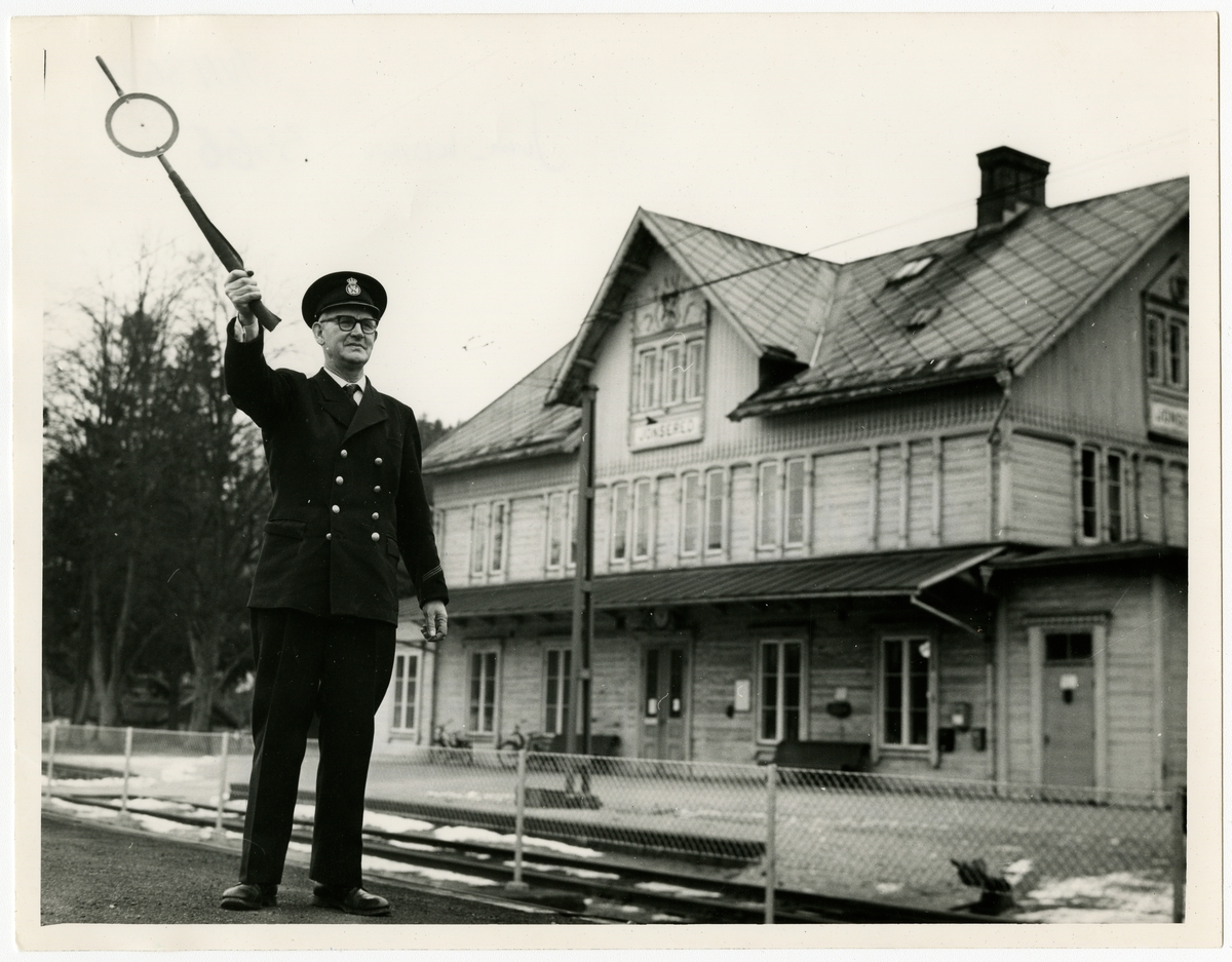 Ger avgångssignal på stationens sista dag 28.2.1962