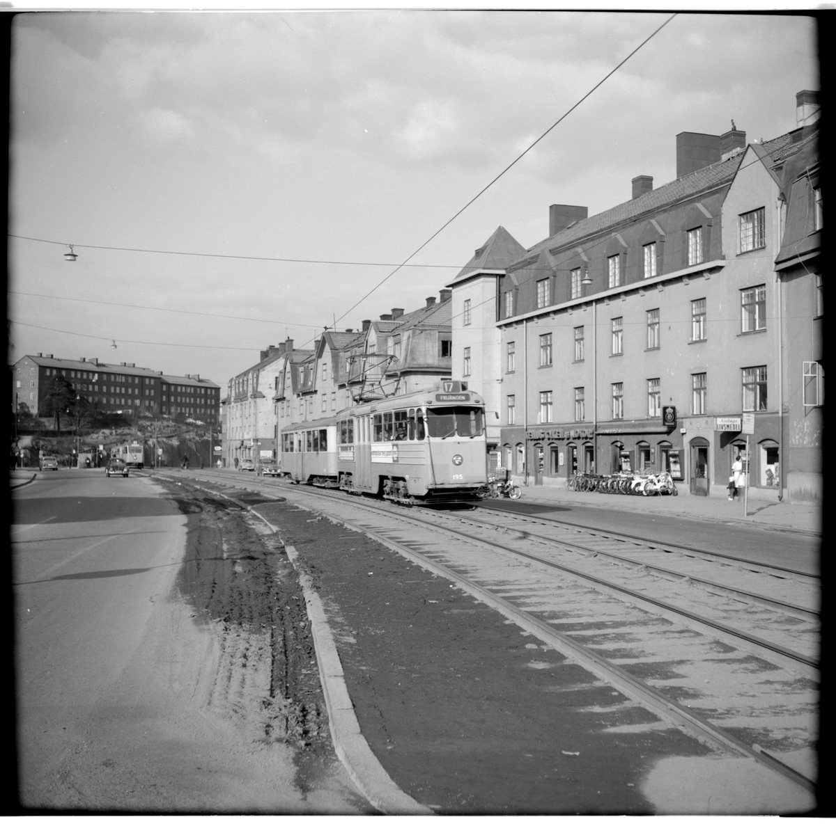 Aktiebolaget Stockholms Spårvägar, SS A29 195 linje 17 Slussen - Tellusborg på Aprilgatan.